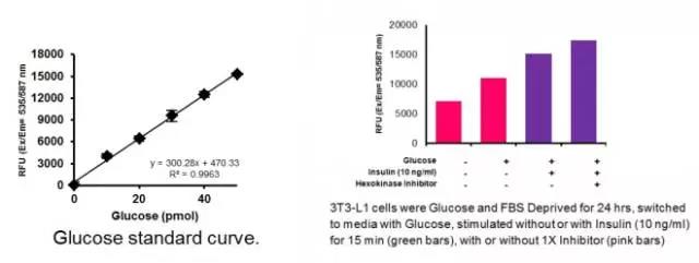 BioVision EZCellTM Glucose Uptake Assay kit 是一種簡單而超級靈敏、易用的葡萄糖攝取檢測試劑盒。試劑盒利用一種特殊的己糖激酶抑制劑抑制己糖激酶,己糖激酶是糖代謝過程中涉及到的第一個酶,在葡萄糖被細胞攝取后,可捕獲葡萄糖。 葡萄糖攝取是利用一系列酶反應(yīng)檢測的,被氧化的葡萄糖產(chǎn)生的中間產(chǎn)物可以與OxiRed?探針反應(yīng)而發(fā)出熒光信號(Ex/Em=535/587 nm) 。熒光信號量直接反應(yīng)細胞所攝取和積累的葡萄糖。不像其他試劑盒是直接檢測葡萄糖衍生物,BioVision 提供了一種直接而強大的葡萄糖研究工具,可用于篩選和表征葡萄糖攝取相關(guān)疾病的藥物。