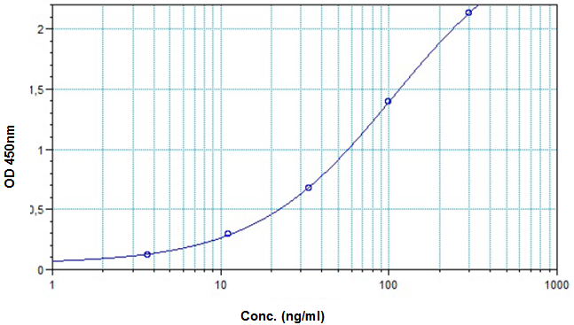 圖例:BioSim?利妥昔單抗ELISA試劑盒的標準曲線圖。(Cat.No. E4371)